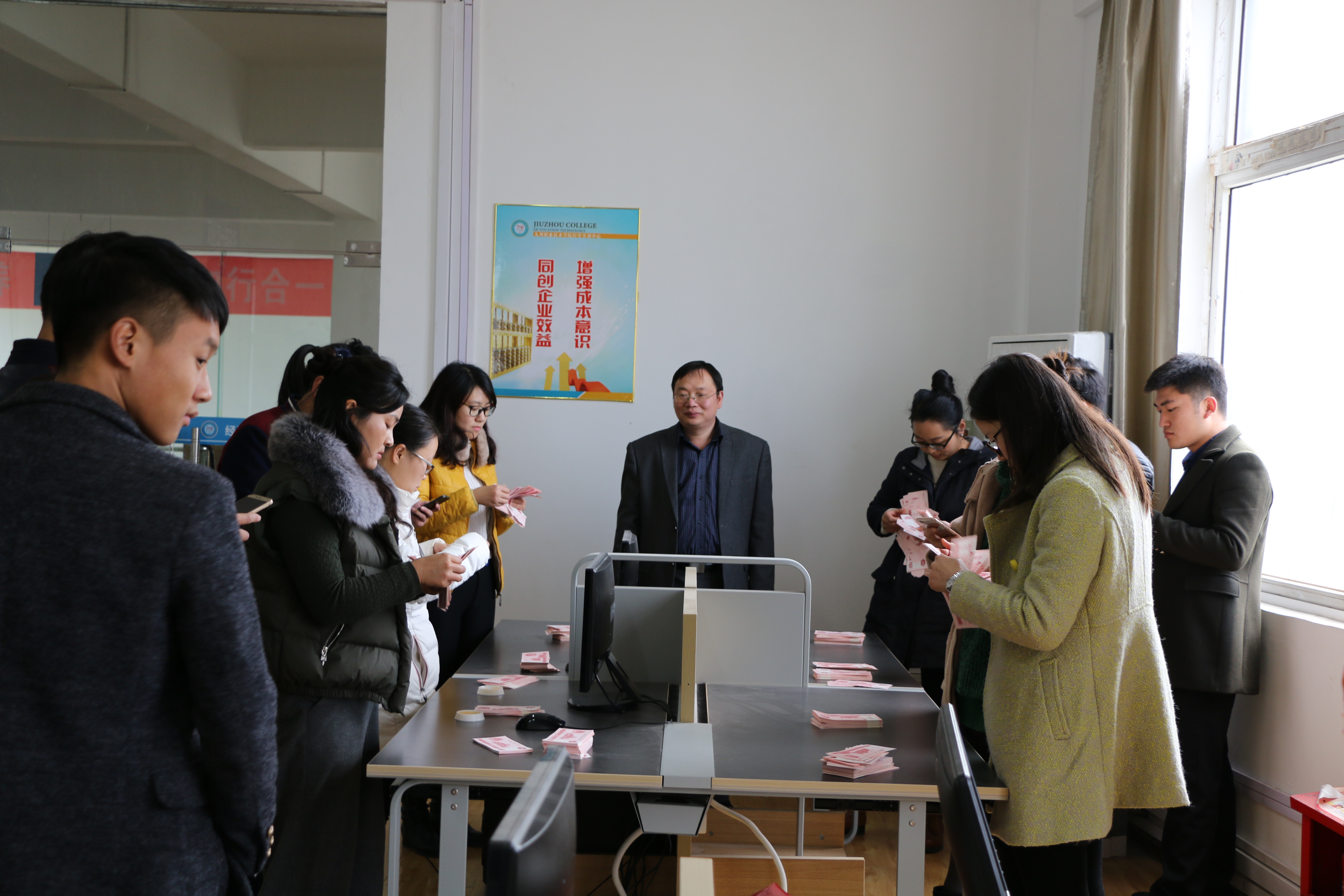 本次竞赛分为点钞、手工做账、电脑会计电算化操作三项内容。为使竞赛活动达到预期目的,取得示范引领的效果,制定了竞赛规则、竞赛程序、竞赛形式和评定标准,成立了由张道响主任、朱存各副主任,以及教师、辅导员、学生代表组成的评委会,并要求所有参赛教师按照竞赛内容和要求认真做好准备。参赛教师为了能充分展示各自的实操技能,赛前作了精心备战,反复练习。竞赛中,参赛教师严格遵守竞赛规则,均以较为娴熟的点钞手法、工整有序的做账技能、熟练的电脑操作技法,在规定时间内快速准确地完成了全部竞赛项目,体现较高的专业实操能力。现场观看的学生无不为他们发出赞赏的声音。有的学生当场表示,不仅要学好专业理论知识,还要像老师那样要熟练地掌握专业实操技能。