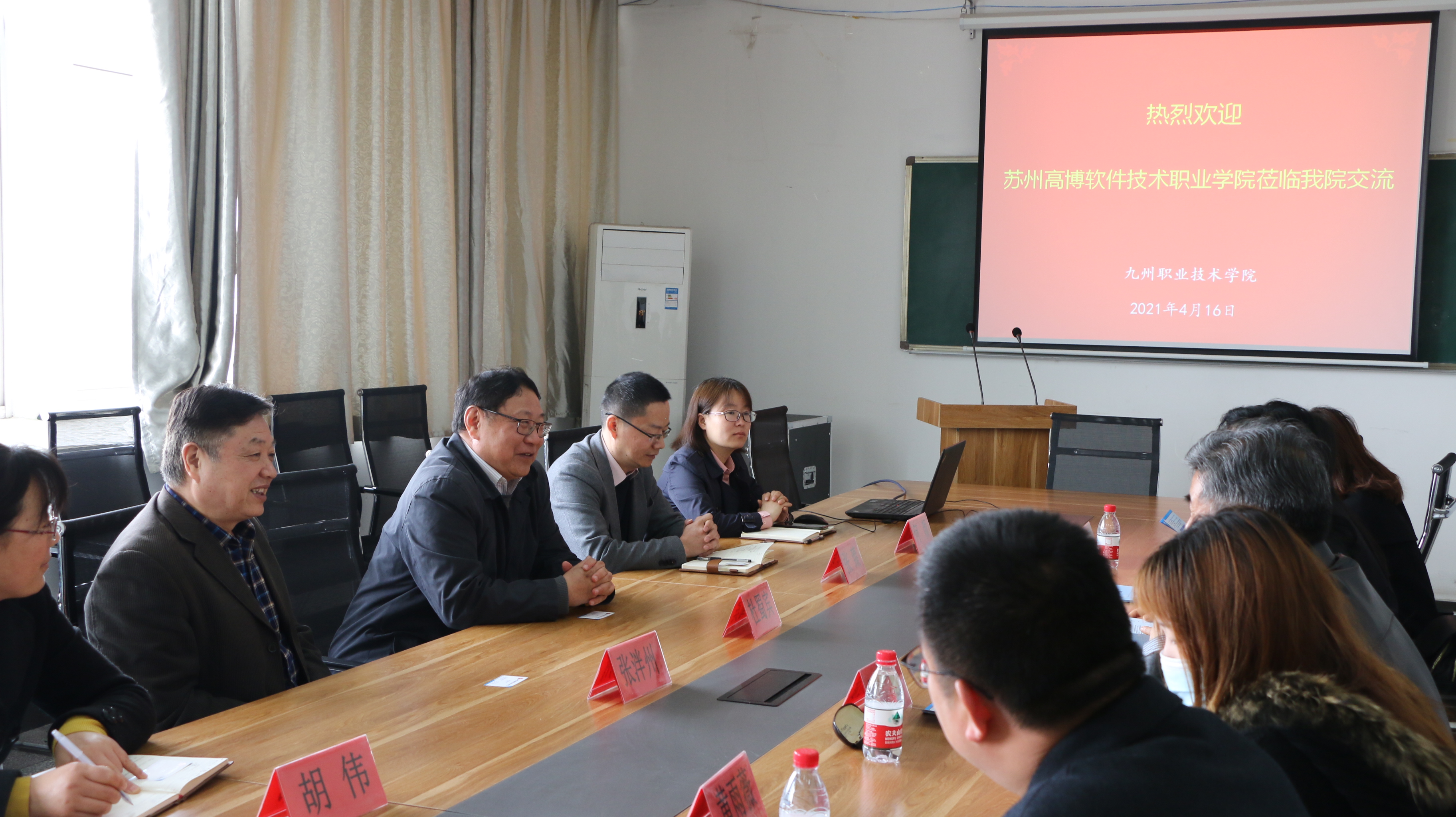 乐鱼leyu(中国)教学副院长杜蜀宾和苏州高博软件技术学院教务处长陆霞、商学院院长王则斌在专业建设、人才培养、学生就业等方面相互做了深入交流。苏州高博软件技术学院重点关注了我院在电子商务专业开展情况。经管系张泮州主任从校企合作、产教融合、学生就业创业人才的培养、孵化基地建设等方面向苏州高博软件技术学院做了详细讲解。他们希望今后能够学习我院在这方面的宝贵经验和做法。