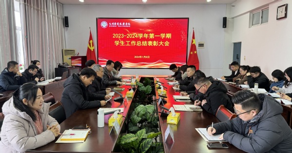 1月8日上午,学院举行2023-2024学年第一学期学生工作总结表彰大会。党委书记吴永平,院长朱开永,党委副书记张超出席会议,学生工作处有关负责人、各系(院)学生工作负责人以及全体专兼职辅导员参加会议。会议由学工处处长朱炳丞主持。