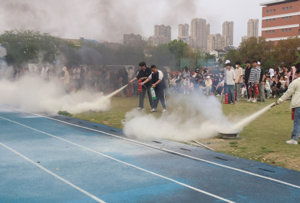 随后,现场师生分组先后进行了火场逃生演练、油盆灭火实战演练和宿舍火灾应急疏散及灭火演练。在火场逃生演练环节,大家进入模拟逃生屋内,在仿真烟雾弹、模拟真实火场环境等条件下,亲身体验了遇到火灾之后的逃生过程;在油盆灭火实战演练环节,大家利用灭火器进行灭火演练,熟练掌握了油盆灭火技术要点;在学生宿舍9号楼,大家按照预定方案有序进行了火场疏散及灭火模拟演练,达到了预期的效果。