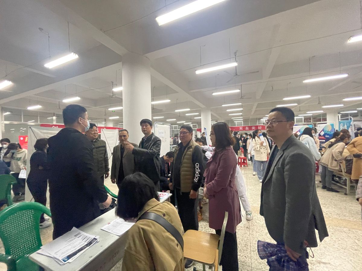 招聘会上,董事长曹竟成、党委书记吴永平、院长朱开永等领导与招聘单位和现场工作人员亲切交谈,给予了就业工作人员高度评价,肯定了以人为本的就业工作理念,也对培养出优秀毕业生的学院老师表达感谢。同时,鼓励同学们多了解几家参会单位,多投出几份简历,争取在这次招聘会上找到适合自己的岗位。