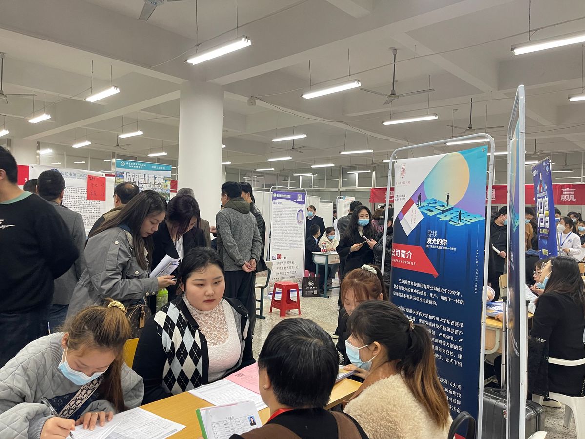 在辅导员老师的组织下参会毕业生积极携带个人简历,早早来到会场等待参会。与往年相比,今年的毕业生关注自身发展、未来发展前景、福利待遇的意识明显增强。招聘会上参会单位积极宣传,从高出往年的薪资待遇、未来发展、企业文化建设等方面吸引学生眼球,并且大部分单位愿意接受毕业生实习。会场气氛热烈,同学们纷纷投出自己的简历,招聘代表与毕业生积极交流,部分同学被招聘单位当场录用。