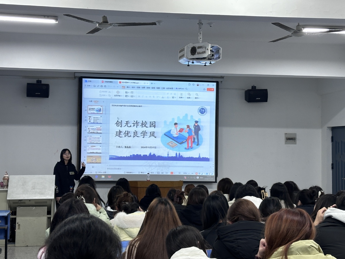 2024年10-11月,根据学校关于“无诈校园”建设的相关要求和《关于进一步加强教风学风建设的通知》的文件精神,医疗与健康学院23、24年级全体班级开展了“创无诈校园·建优良学风”主题班会活动,全体专兼职辅导员主持班会,通过对校园电信诈骗知识普及和案例分享,提高学生们的防骗意识、增强自我保护能力、构建和谐安全的校园环境。