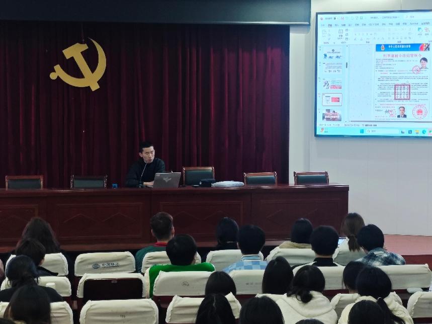 为深入贯彻落实学校“无诈校园”创建工作,增强学生防范电信网络诈骗的意识和能力,4月1日,医疗与健康学院在主南二报告厅举办反诈专题教育课,组织近200名在校生积极参加讲座,辅导员全程带队组织,维护秩序,确保活动高效有序开展。